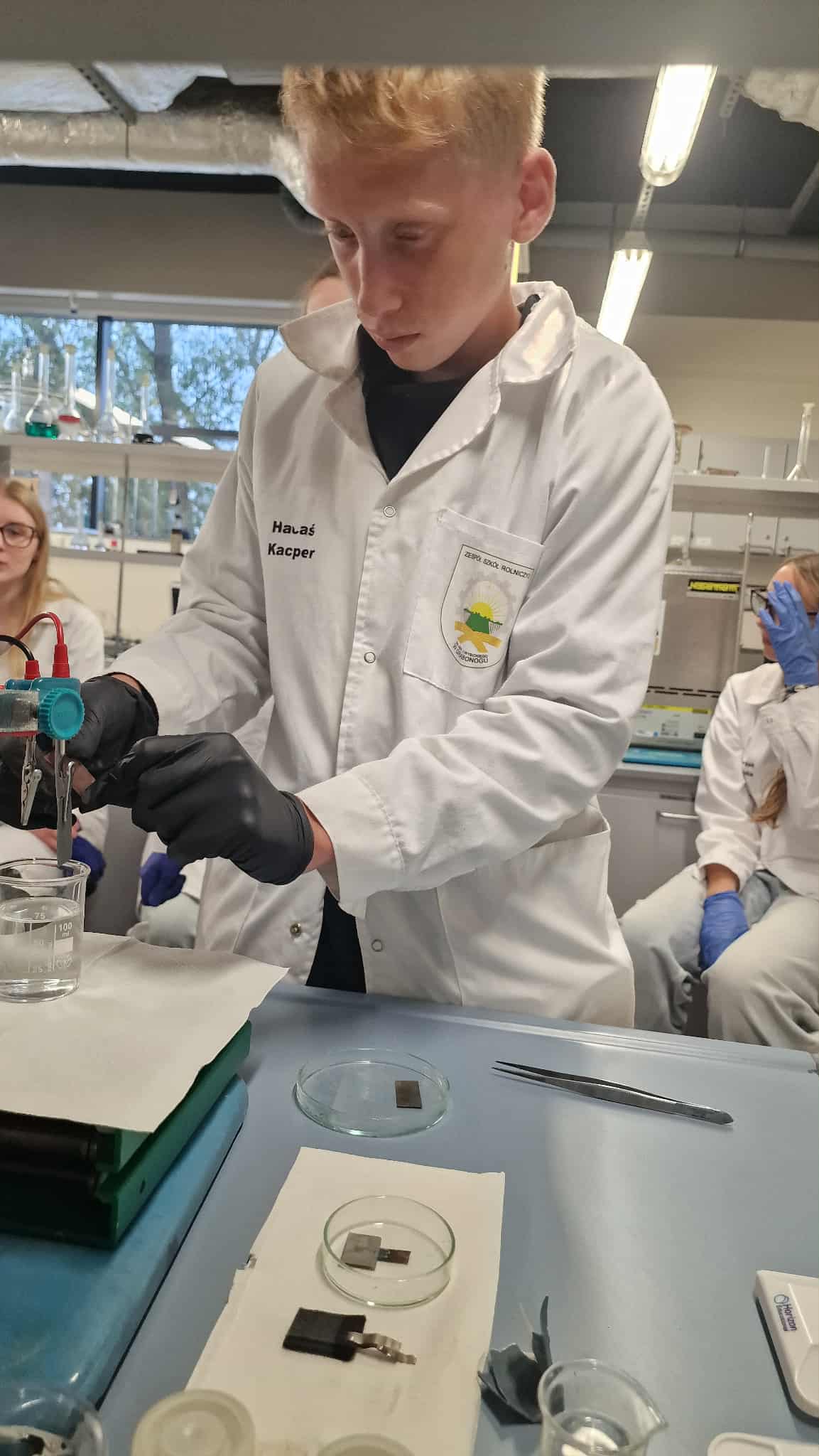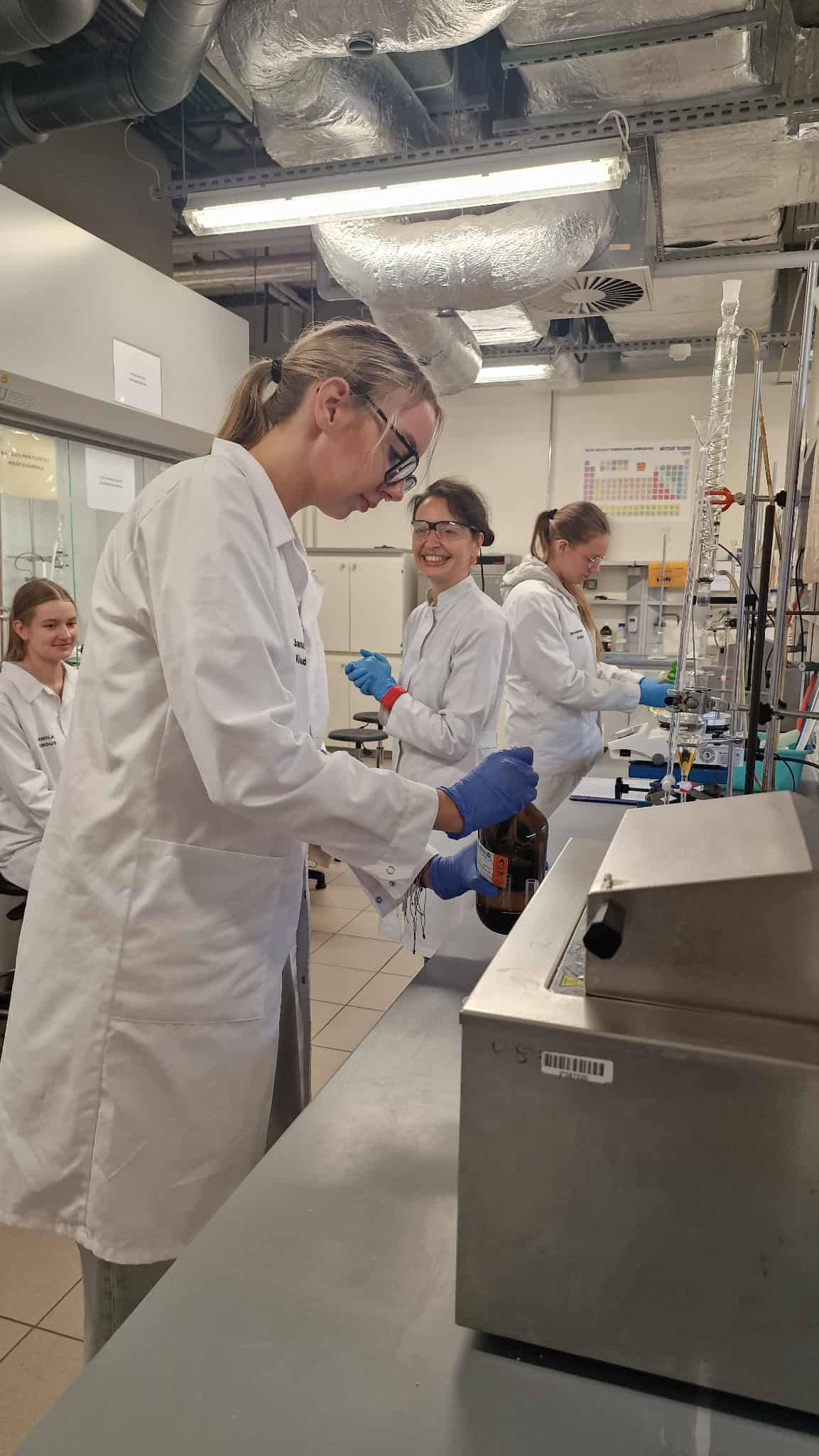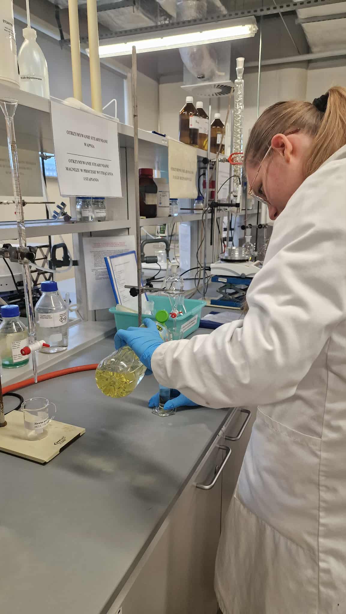 Młodzież pracowała w laboratoriach: chemii analitycznej, elektrochemii, chemii organicznej oraz technologii organicznej.