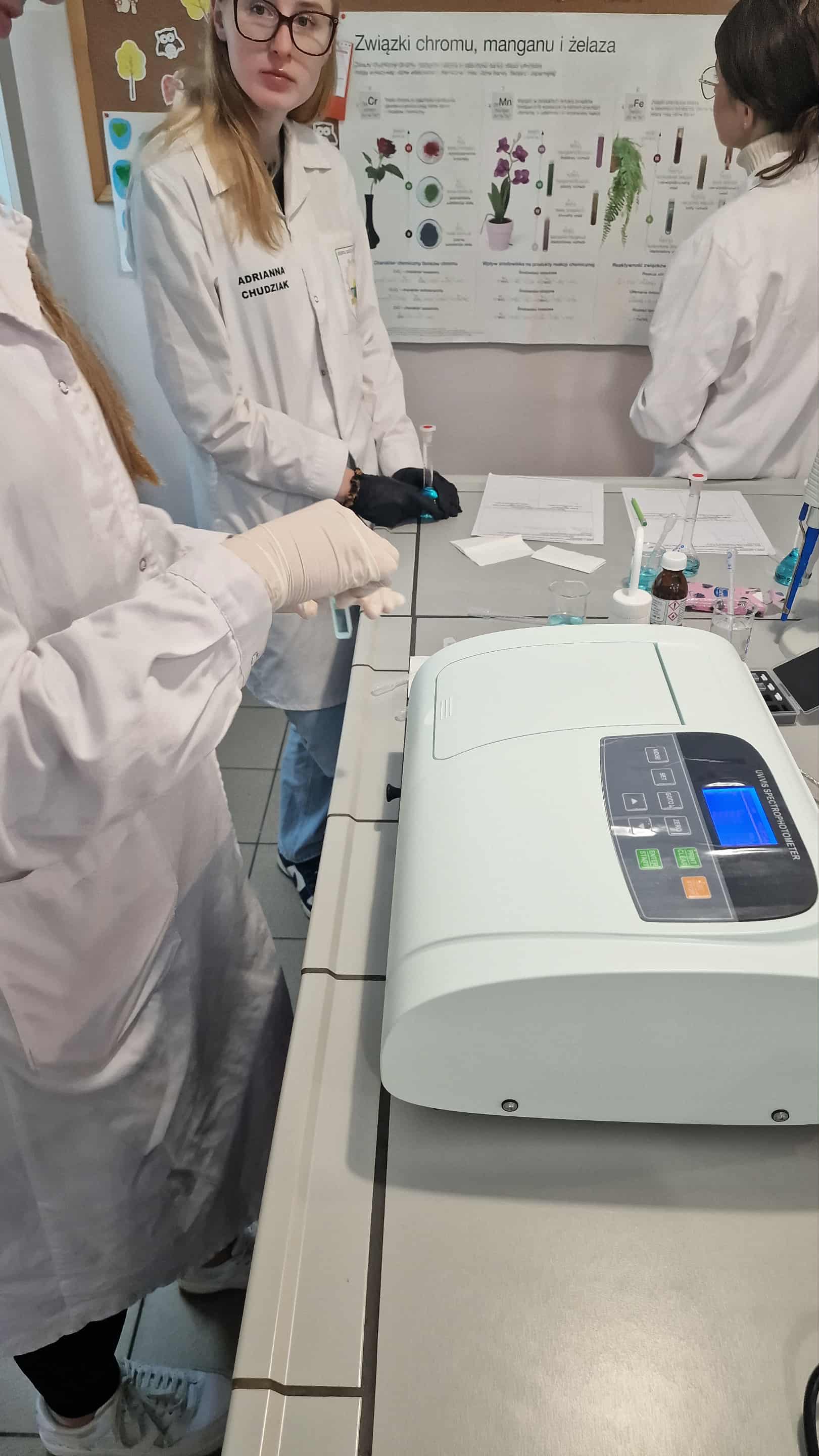 Zajęcia pozwoliły uczniom na praktyczne zastosowanie wiedzy teoretycznej oraz na doskonalenie umiejętności pracy z nowoczesną aparaturą pomiarową, jaką jest spektrofotometr UV-Vis. Uczniowie mogli również przekonać się, jak istotną rolę odgrywa precyzja, dokładność oraz prawidłowe przygotowanie próbek w pracy analityka chemicznego.