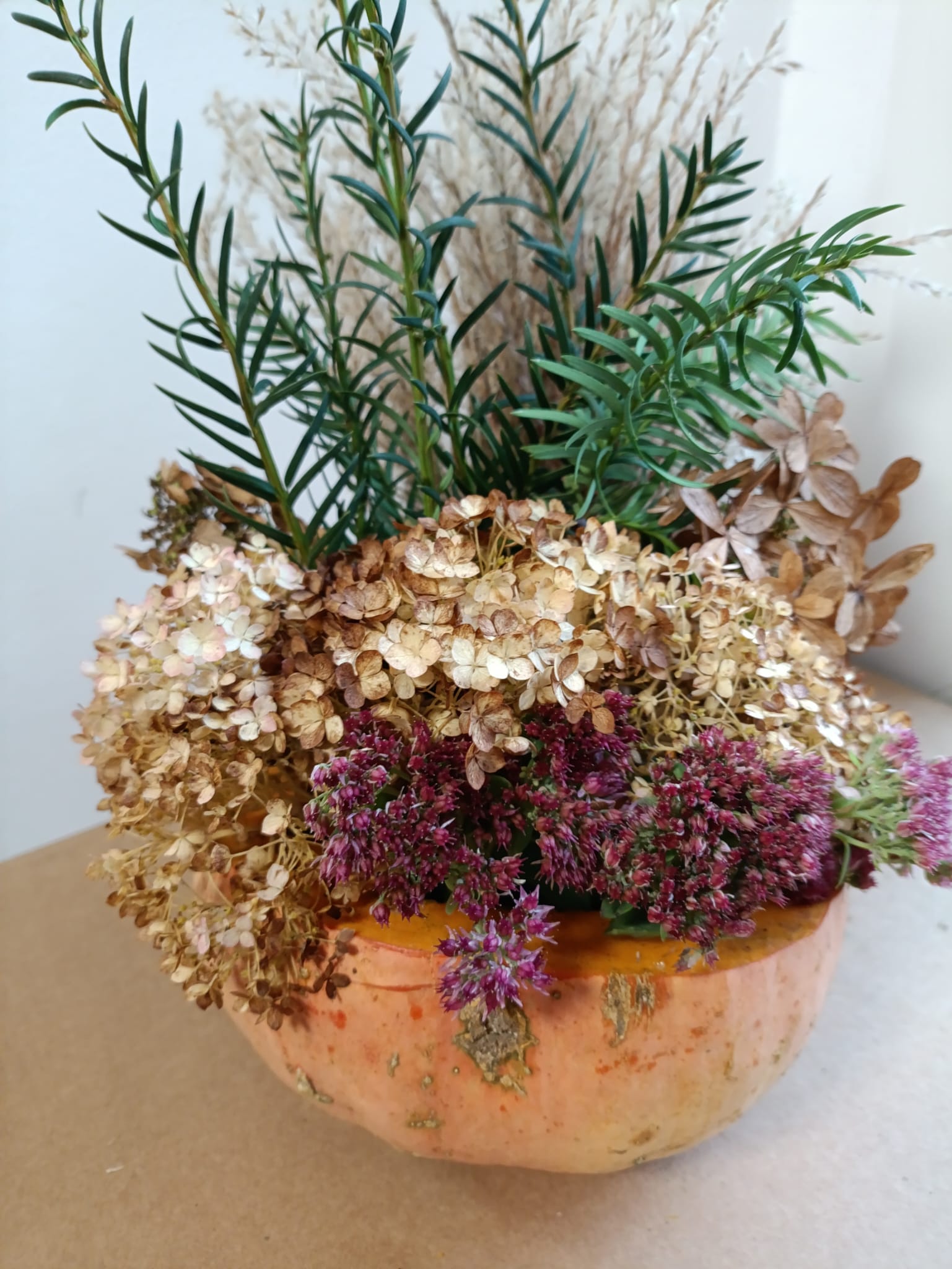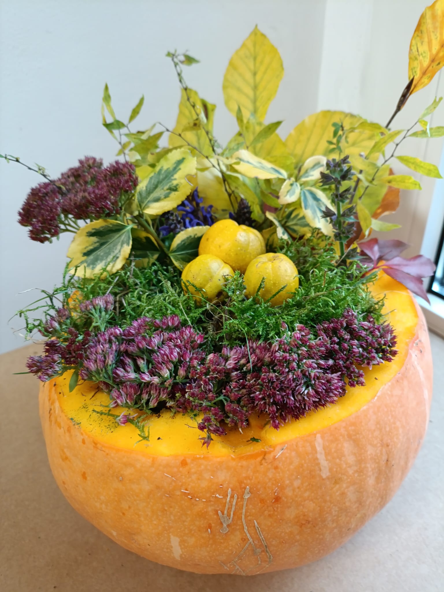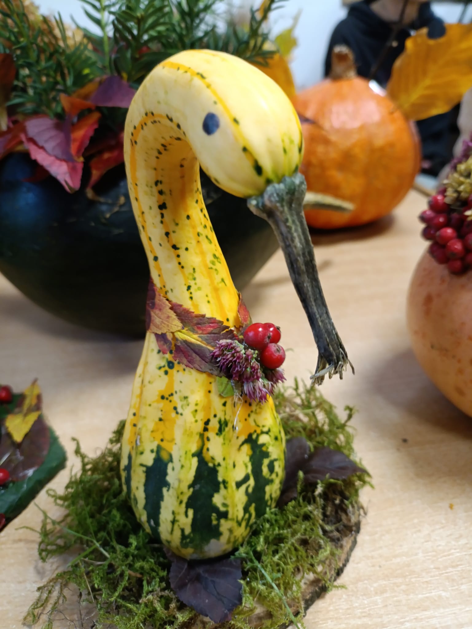 Dynia jest niekwestionowaną królową jesieni. Nie mogło więc jej zabraknąć na zajęciach z innowacji pedagogicznej „Aranżacja wnętrz’’ w klasie III Technikum kształcącego w zawodzie technik architektury krajobrazu.