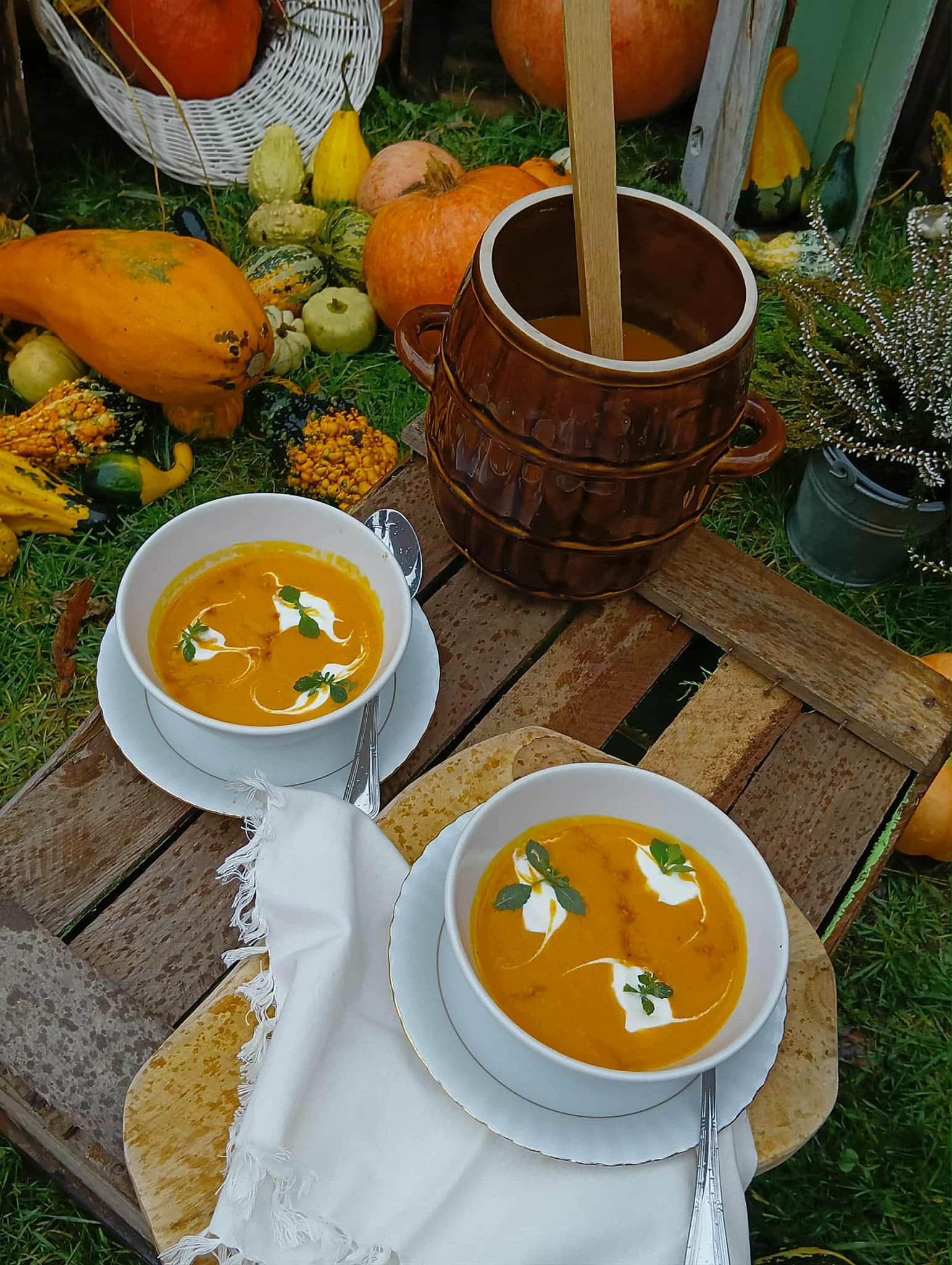 Do przygotowania potraw wykorzystano sezonowe i lokalne produkty, w tym wyroby z Gostyńskiej mleczarni oraz cukrowni Pfeifer & Langen Polska S.A.. Zupa powstała z połączenia dyni, papryki, marchwi, cebuli i czosnku, doprawionych aromatycznymi ziołami i przyprawami, a całość udekorowano delikatnym kleksem śmietany.
