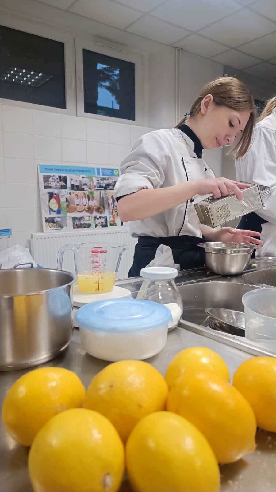 Podczas jednego ze spotkań uczniowie klasy trzeciej Technikum Żywienia i Usług Gastronomicznych przygotowywali tartaletki z lemon curd. Praca nad kruchym ciastem i cytrynowym kremem była doskonałym wprowadzeniem do świata monoporcji, wymagającym zarówno precyzji, jak i kreatywności.