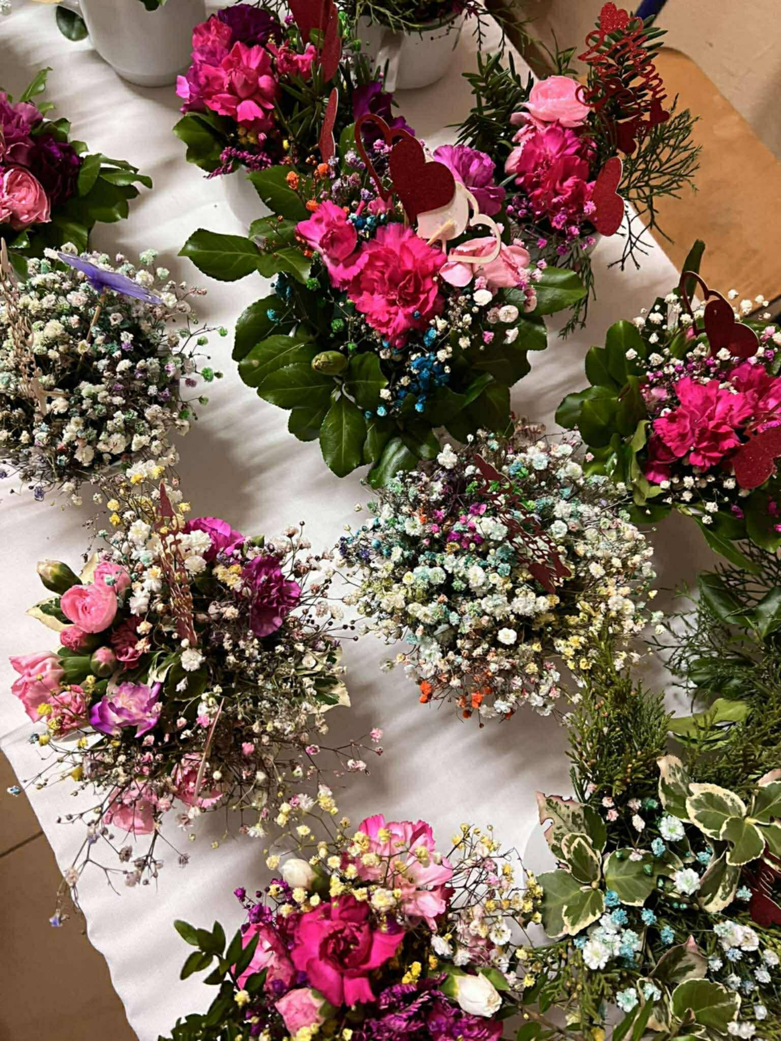 Własnoręcznie przygotowane kompozycje florystyczne cieszyły się dużym zainteresowaniem społeczności szkolnej.