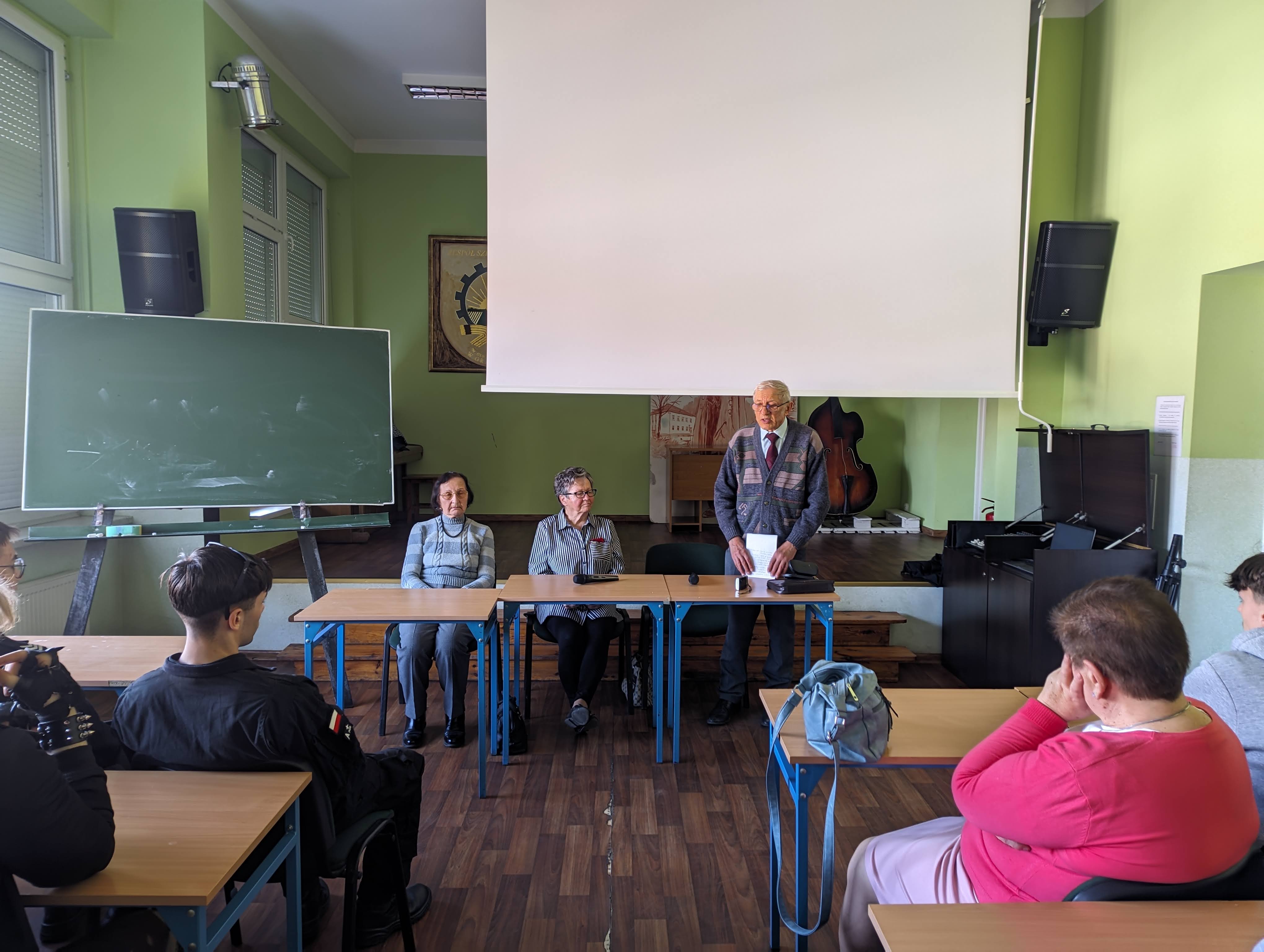 Inicjatorem spotkania był absolwent i przyjaciel szkoły: Jan Nowacki, a prelegentkami panie Zofia Biderman i Melania Andrzejczak - “dzieci” przesiedlone podczas II wojny światowej.
