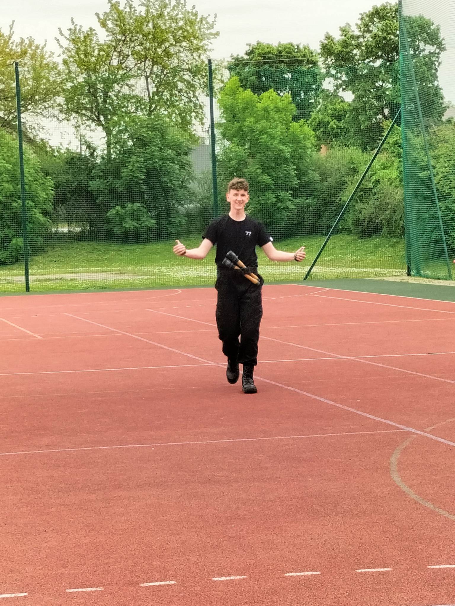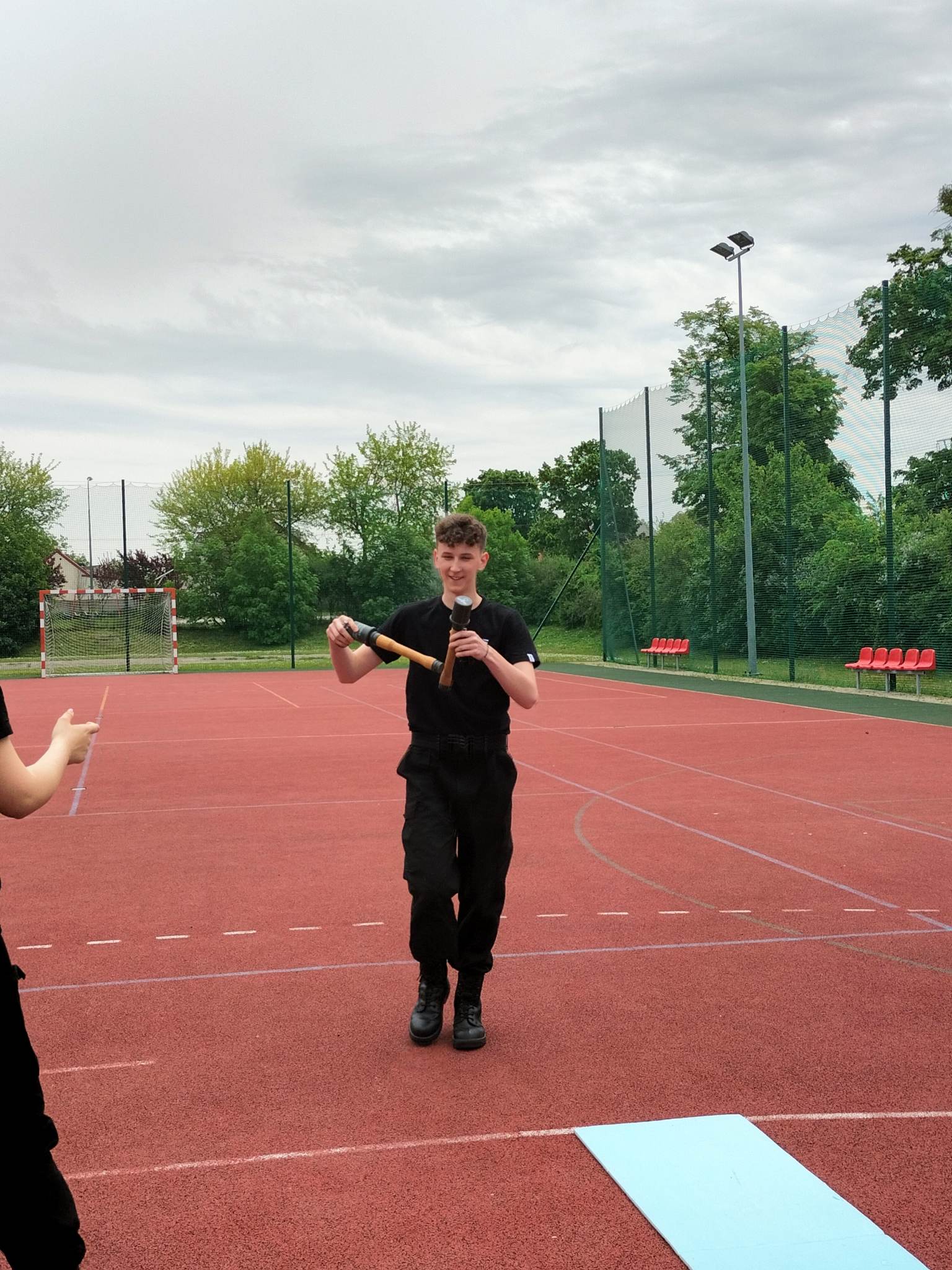 Klasa policyjna w ramach zajęć z edukacji dla bezpieczeństwa wzięła udział w klasowych zawodach rzutu granatem. Każdy kadet otrzymał 2 granaty, po czym zajął stanowisko do wykonania rzutów. Każdy rzut wykonywany był na komendę „RZUT” i dźwięk gwizdka.