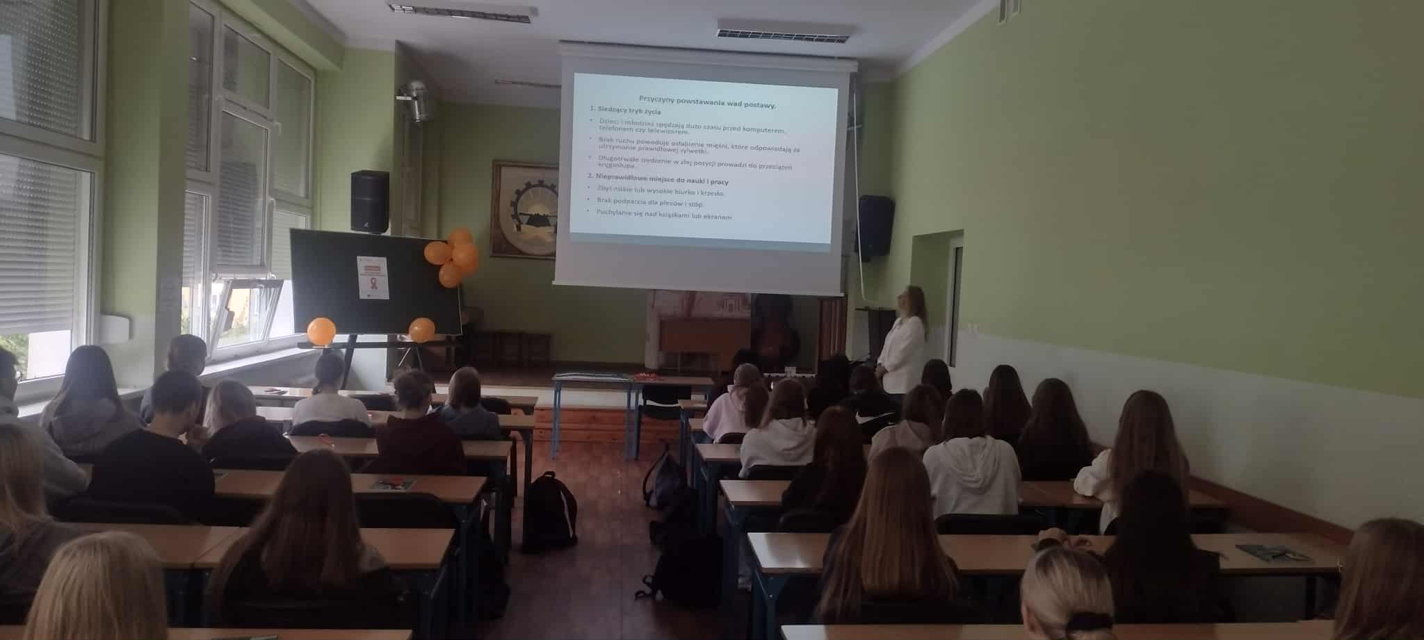 17.09 gościliśmy w naszej szkole rehabilitanta z Bronifraterskiego Centrum Medycznego w Piaskach, który w ramach obchodów Światowego Dnia Pacjenta podzielił się z nami cennymi informacjami na temat wad postawy.