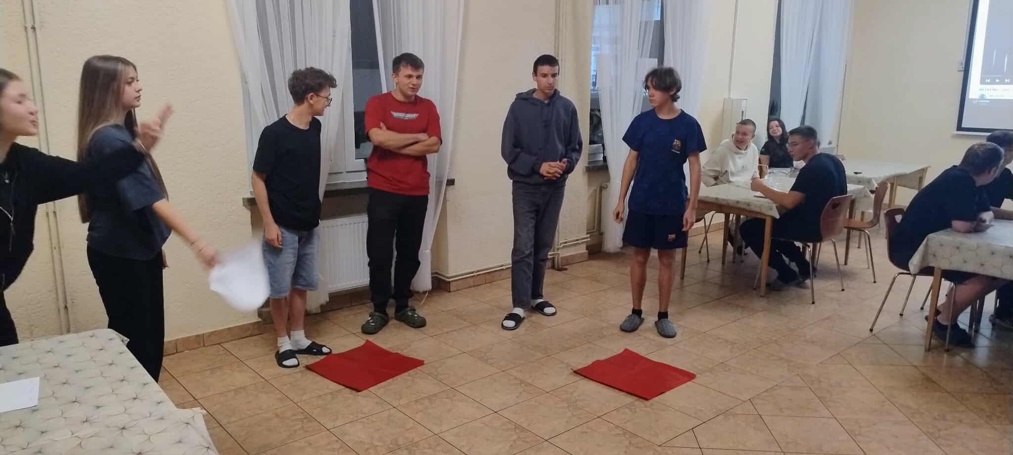 W stołówce internackiej odbyła się wesoła impreza okolicznościowa, podczas której chłopcy mogli sprawdzić swoje umiejętności w licznych konkursach i zadaniach. Zostali podzieleni na czteroosobowe zespoły, a następnie rozpoczęła się pełna śmiechu rywalizacja.