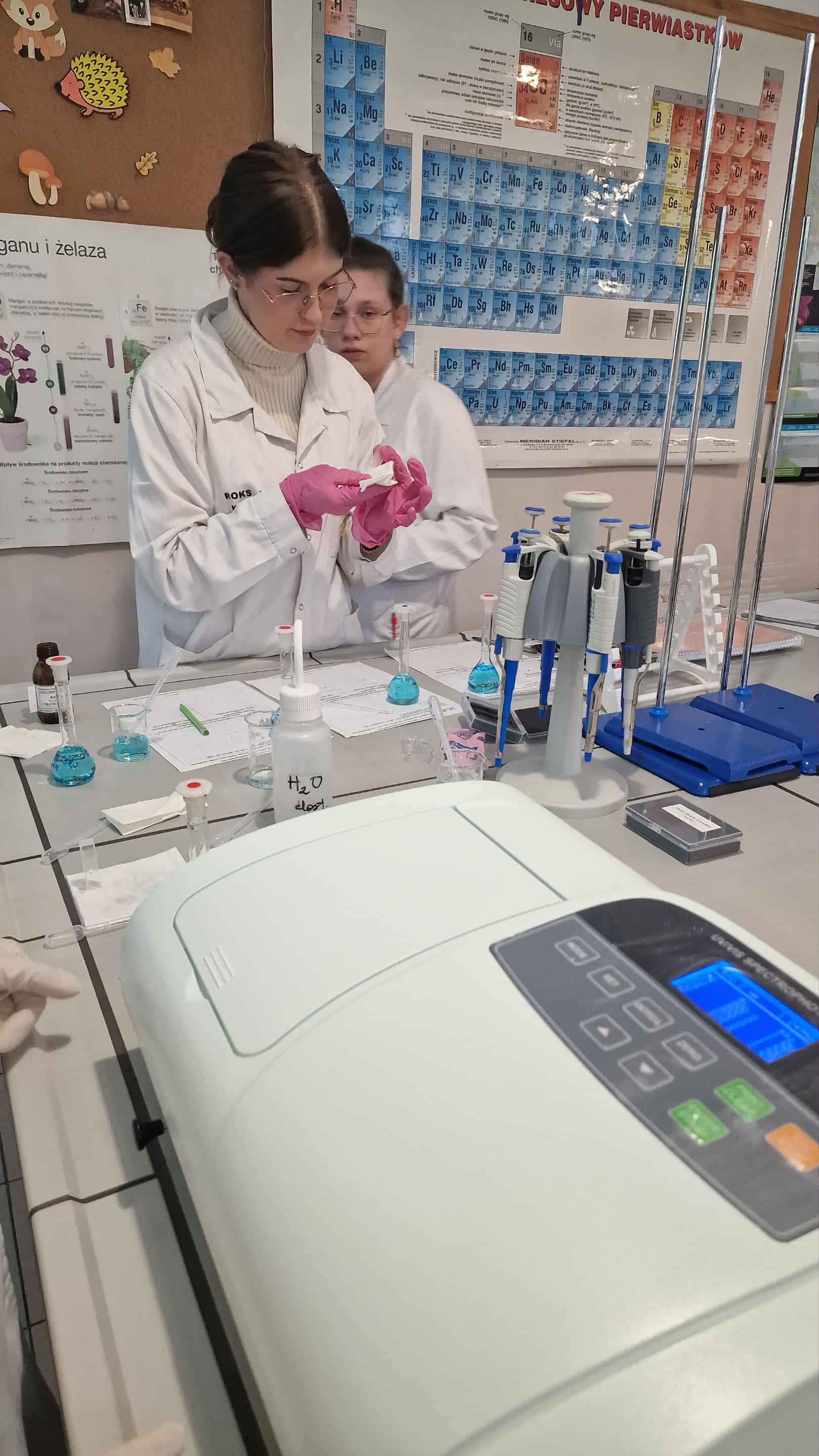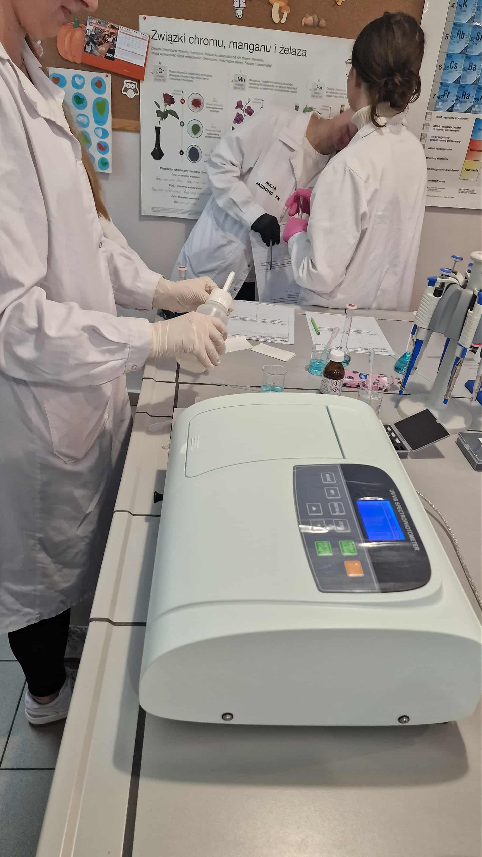 Zajęcia pozwoliły uczniom na praktyczne zastosowanie wiedzy teoretycznej oraz na doskonalenie umiejętności pracy z nowoczesną aparaturą pomiarową, jaką jest spektrofotometr UV-Vis. Uczniowie mogli również przekonać się, jak istotną rolę odgrywa precyzja, dokładność oraz prawidłowe przygotowanie próbek w pracy analityka chemicznego.