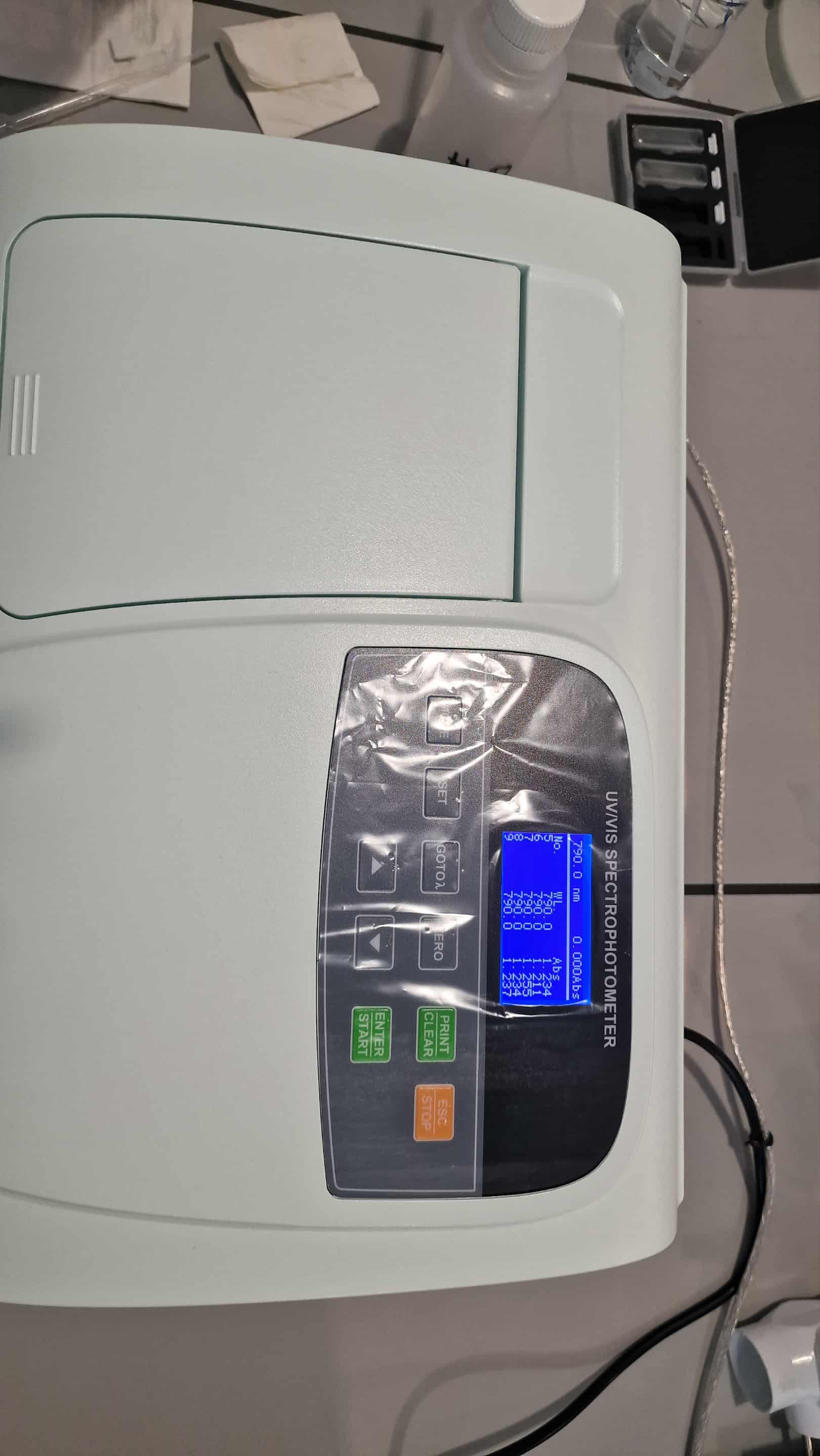 W ramach zajęć praktycznych z analizy instrumentalnej uczniowie klasy piątej kształcący się w zawodzie technik analityk mieli okazję zapoznać się z zasadą działania oraz obsługą spektrofotometru UV-Vis – nowoczesnego urządzenia wykorzystywanego w laboratoriach chemicznych, środowiskowych i przemysłowych, który został zakupiony w ramach projektu „Zostań zawodowcem!"- wsparcie kształcenia zawodowego i ustawicznego w Powiecie Gostyńskim.