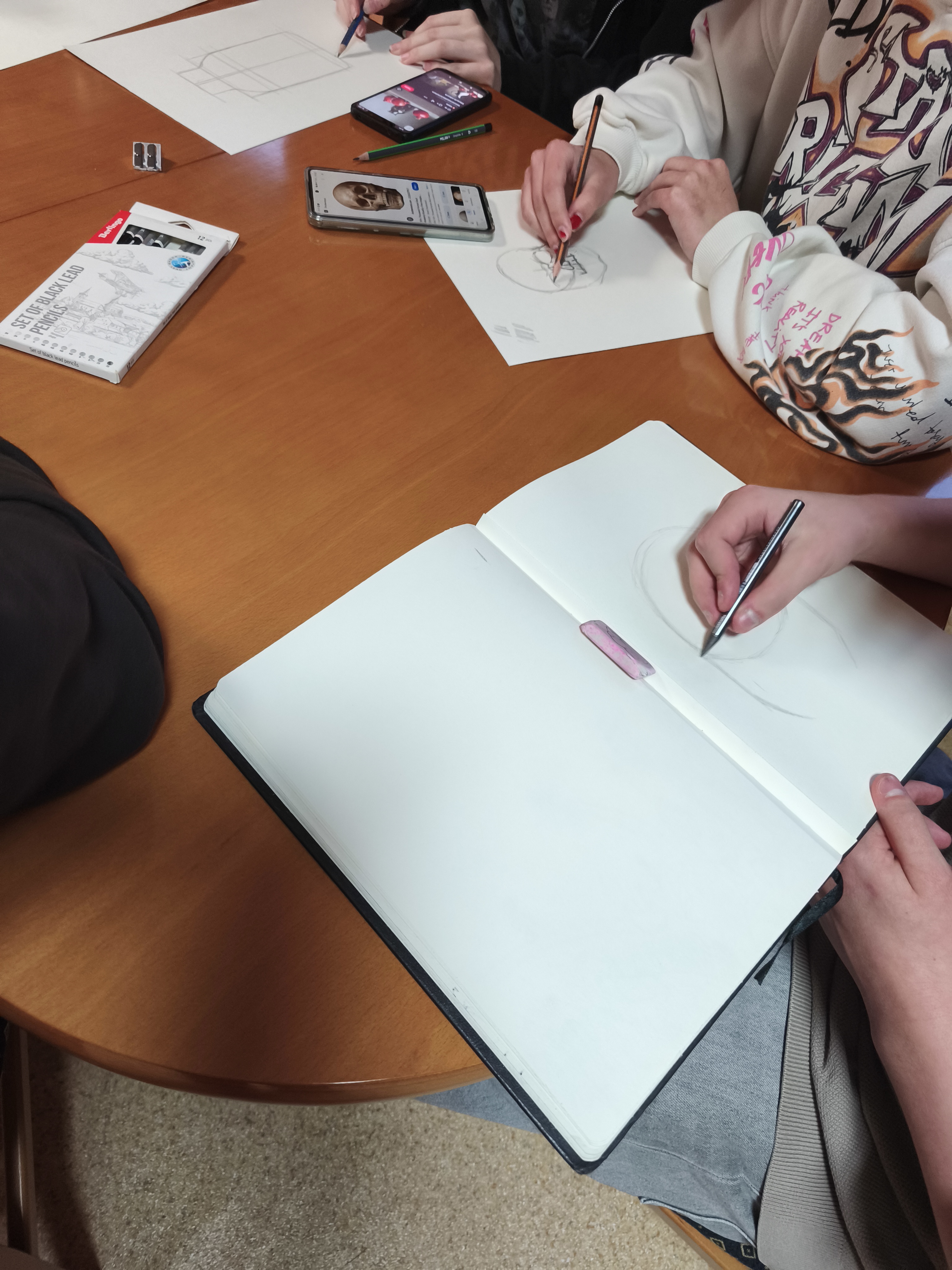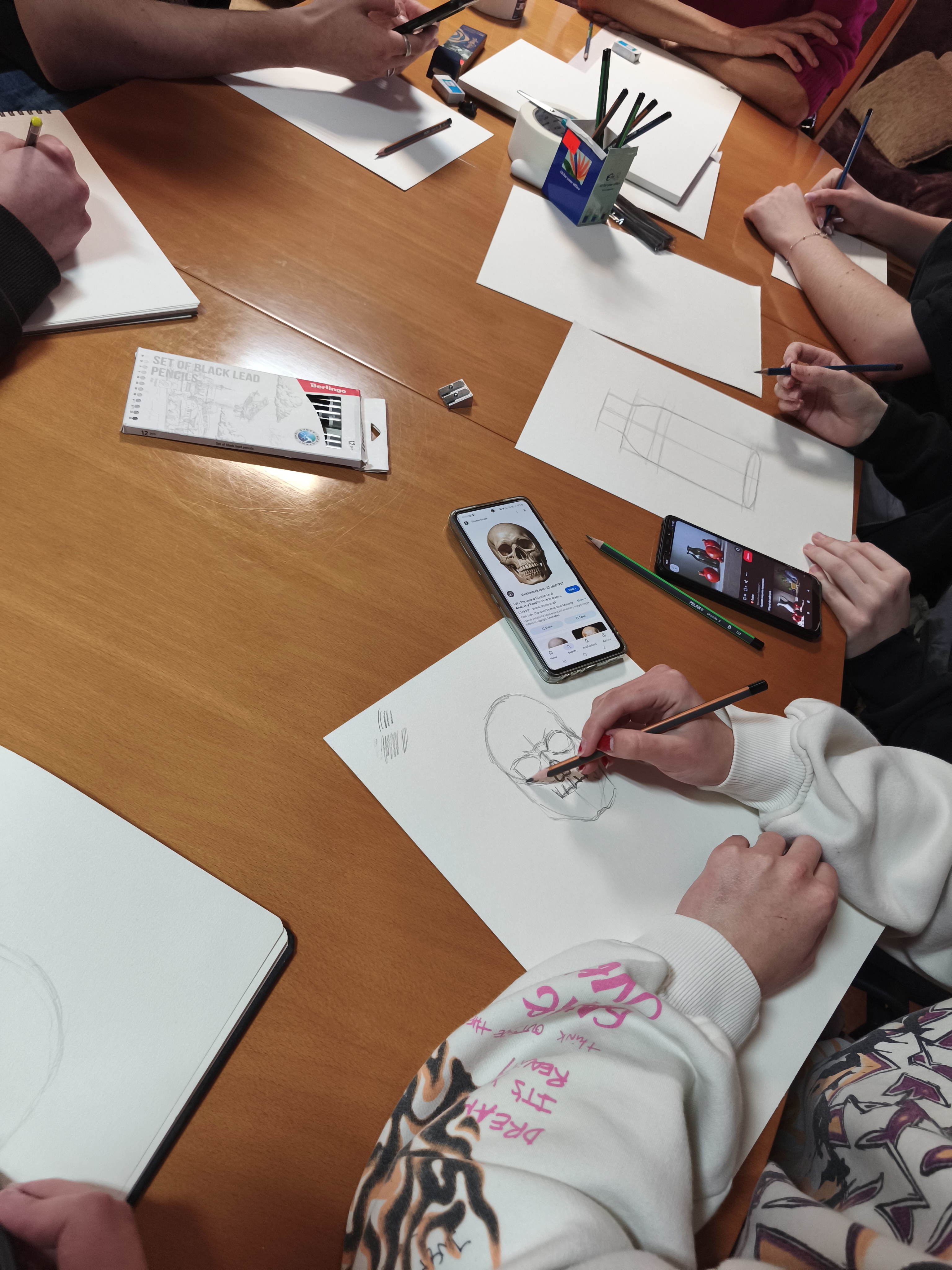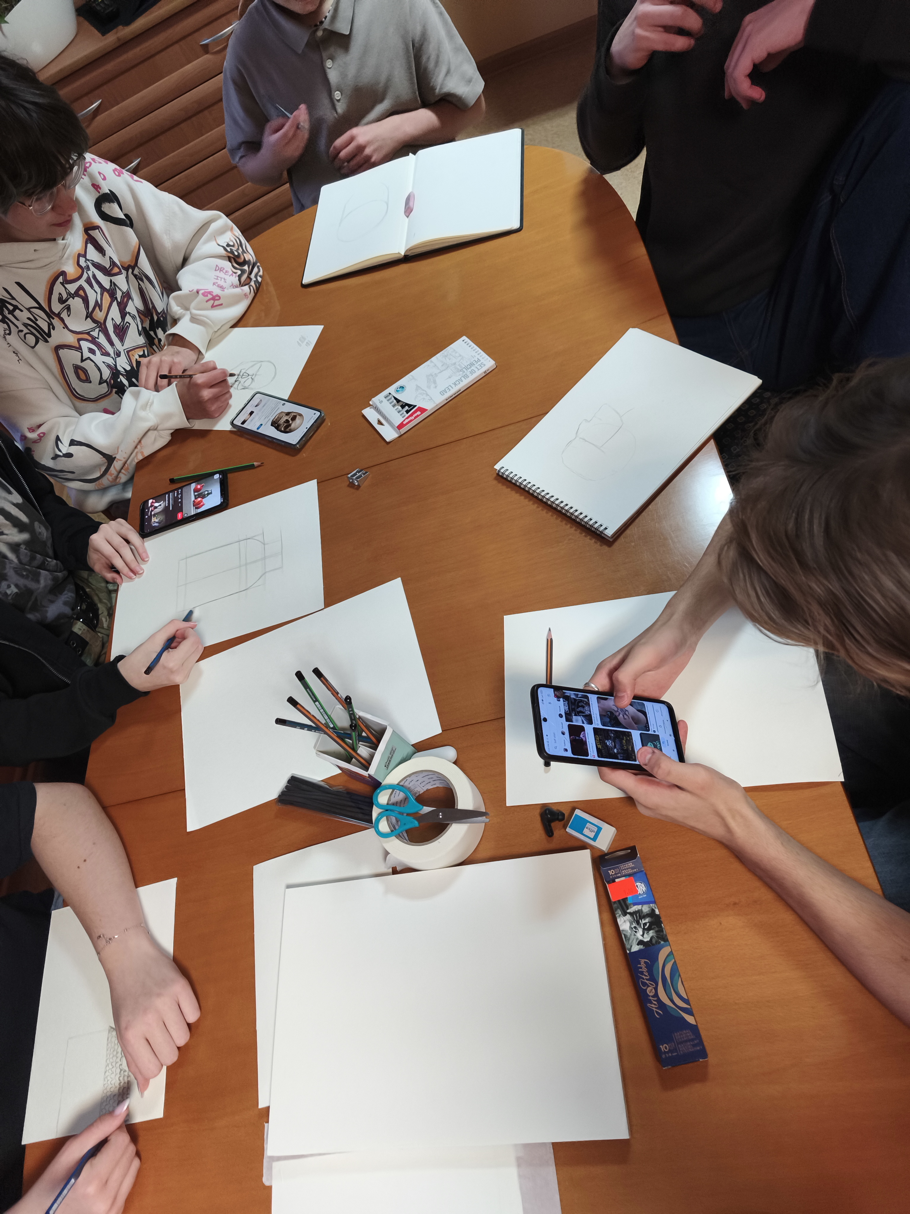 Podczas warsztatów uczestnicy mogli poznać podstawowe techniki szkicowania oraz sposoby uchwycenia proporcji i perspektywy. Temat pracy był dowolny, dzięki czemu każdy mógł puścić wodze wyobraźni i stworzyć coś wyjątkowego. Młodzież z dużym zaangażowaniem podjęła artystyczne wyzwanie, pokazując swój talent, kreatywność i indywidualne spojrzenie na świat.