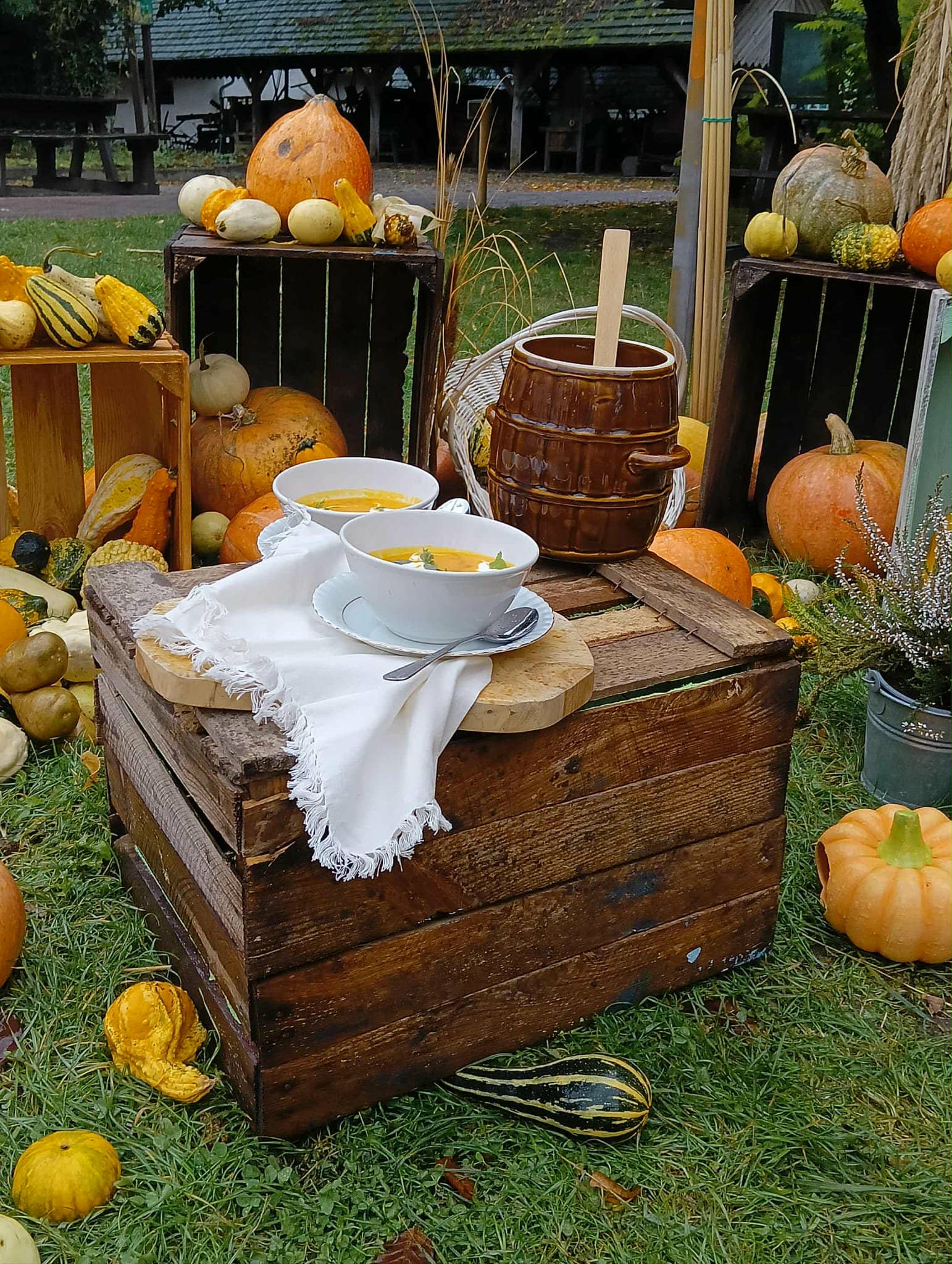 Do przygotowania potraw wykorzystano sezonowe i lokalne produkty, w tym wyroby z Gostyńskiej mleczarni oraz cukrowni Pfeifer & Langen Polska S.A.. Zupa powstała z połączenia dyni, papryki, marchwi, cebuli i czosnku, doprawionych aromatycznymi ziołami i przyprawami, a całość udekorowano delikatnym kleksem śmietany.