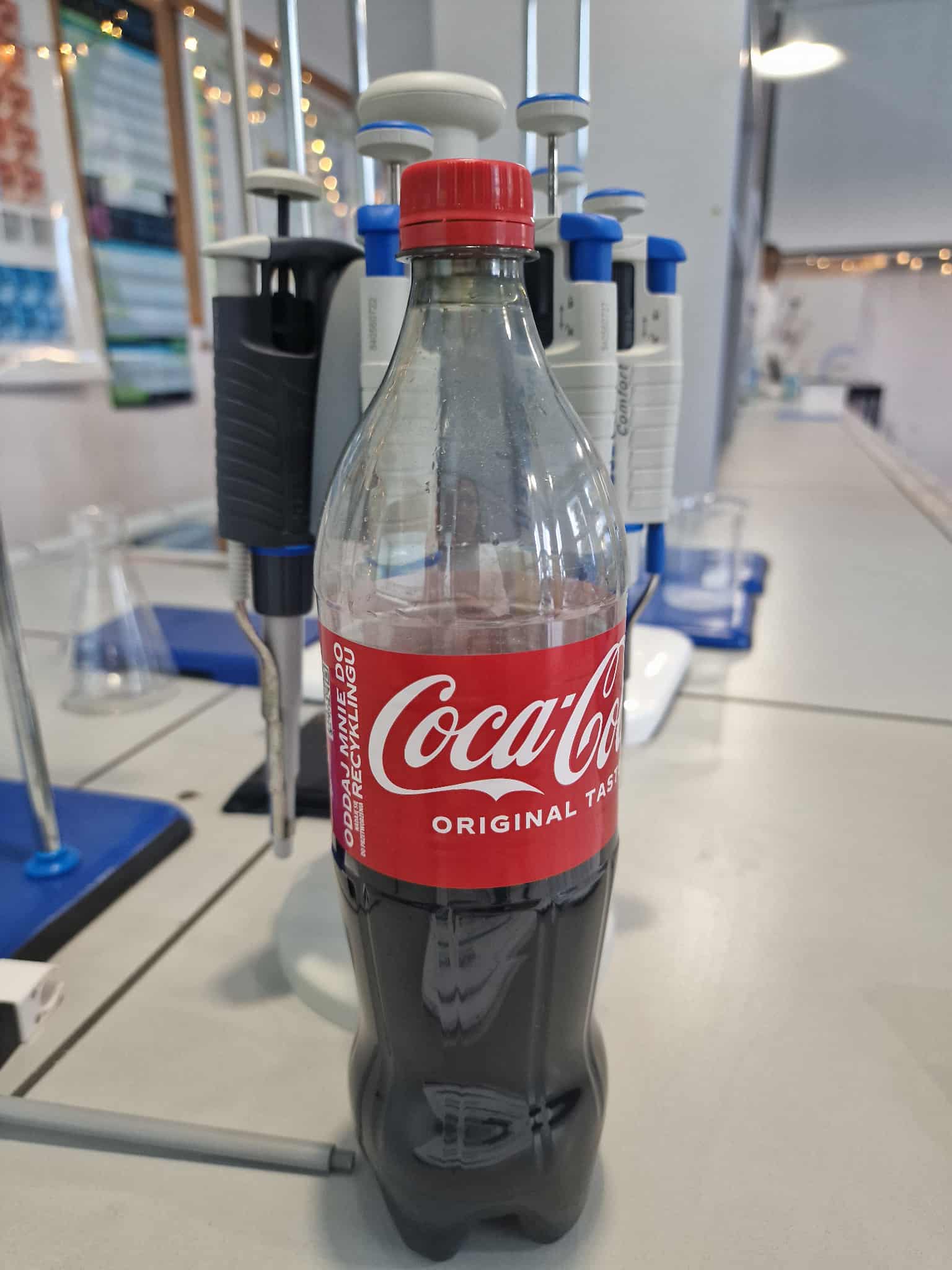 Uczniowie kształcący się w zawodzie technik analityk podczas zajęć praktycznych w pracowni kontroli laboratoryjnej i procesowej przeprowadzili analizę zawartości kwasu ortofosforowego(V) w napoju Coca-Cola.