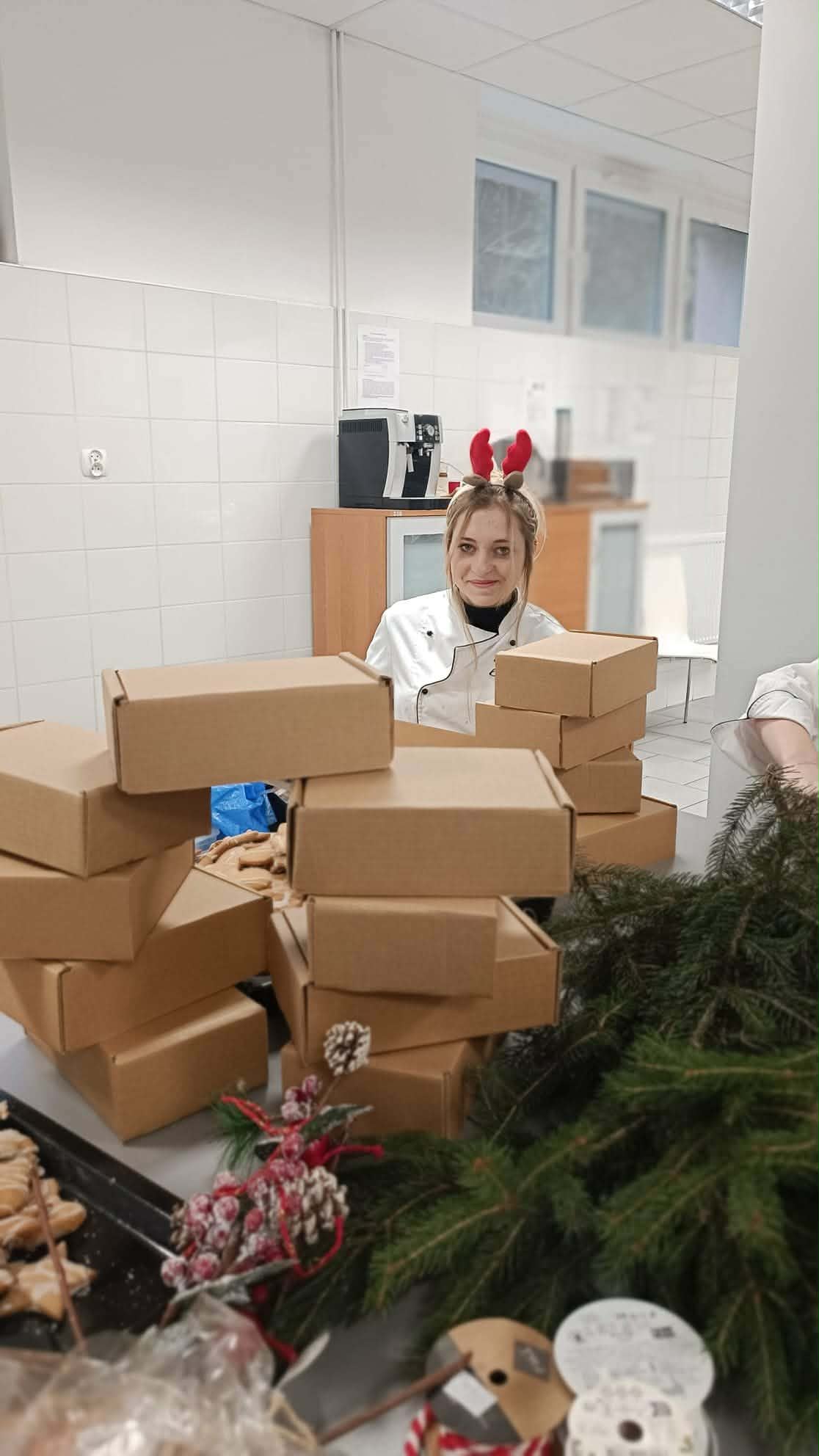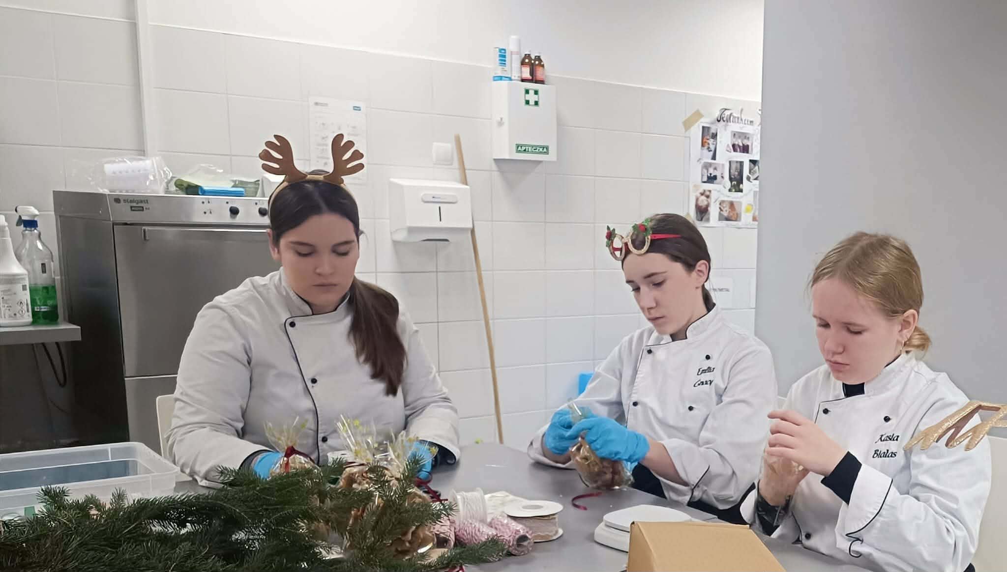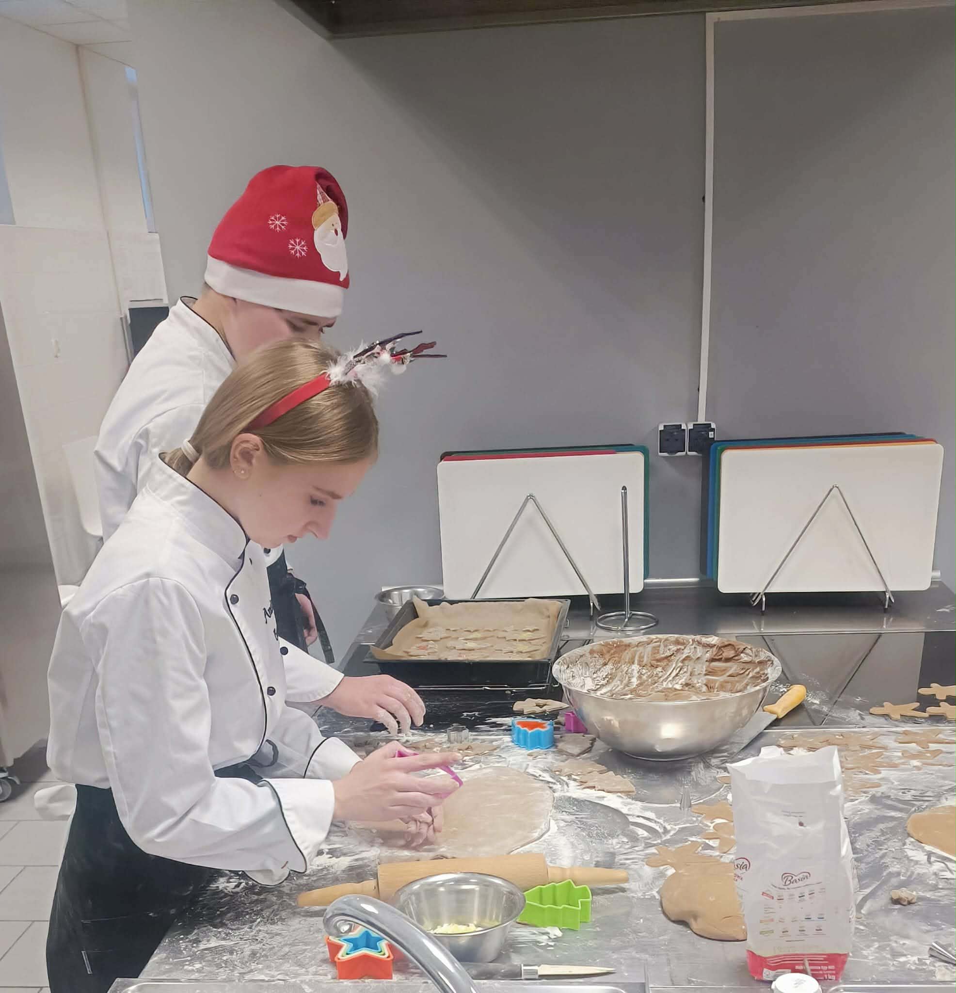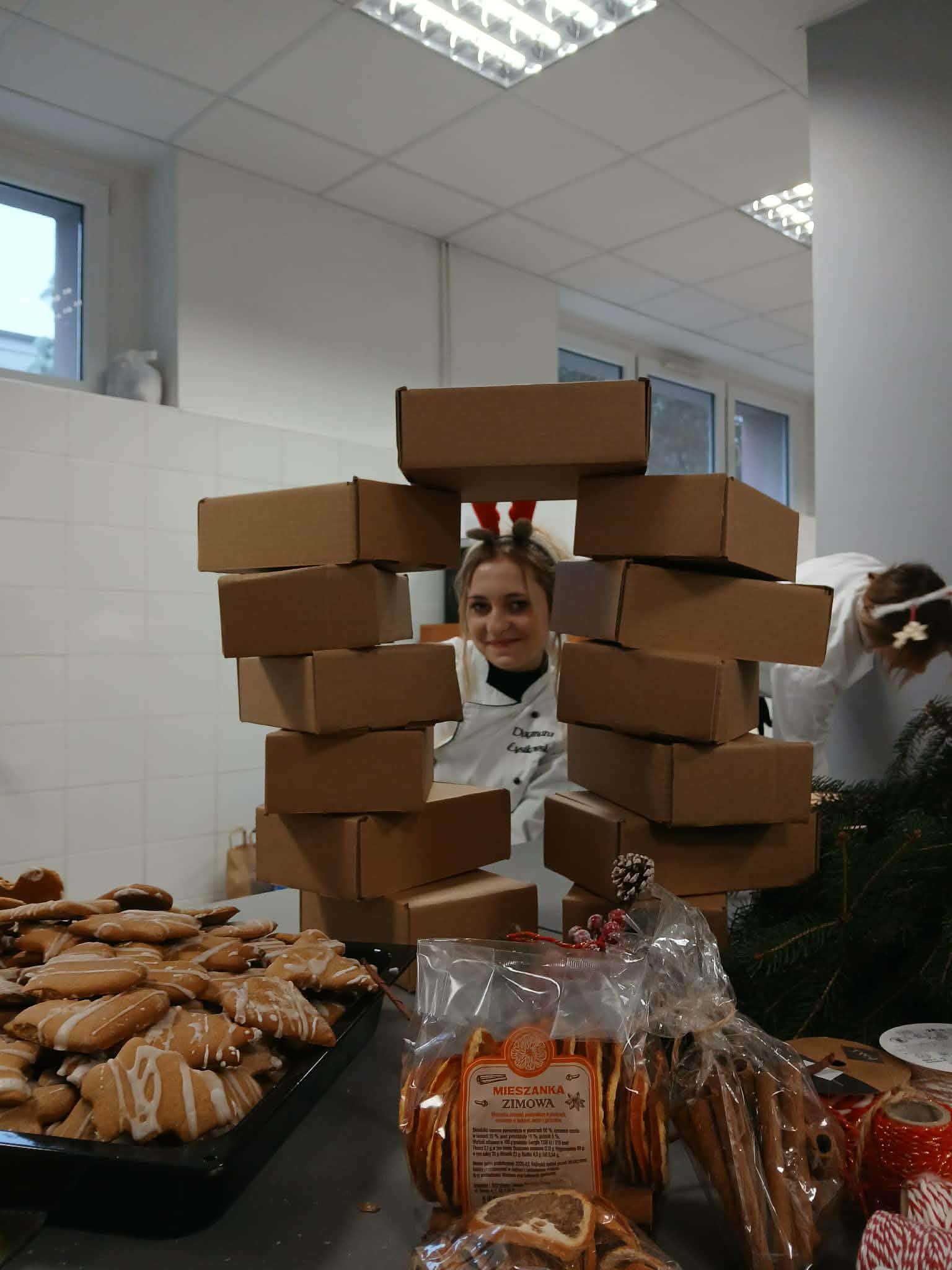 Podczas zajęć młodzież przygotowywała ciasto długodojrzewające, które wymaga cierpliwości i precyzji, aby uzyskać odpowiednią konsystencję i aromat charakterystyczny dla tradycyjnych pierników. Po okresie dojrzewania ciasto zostało wywałkowane i wykrawane w świąteczne kształty, a następnie pieczone w atmosferze pełnej klimatu świątecznego i radosnej pracy zespołowej.