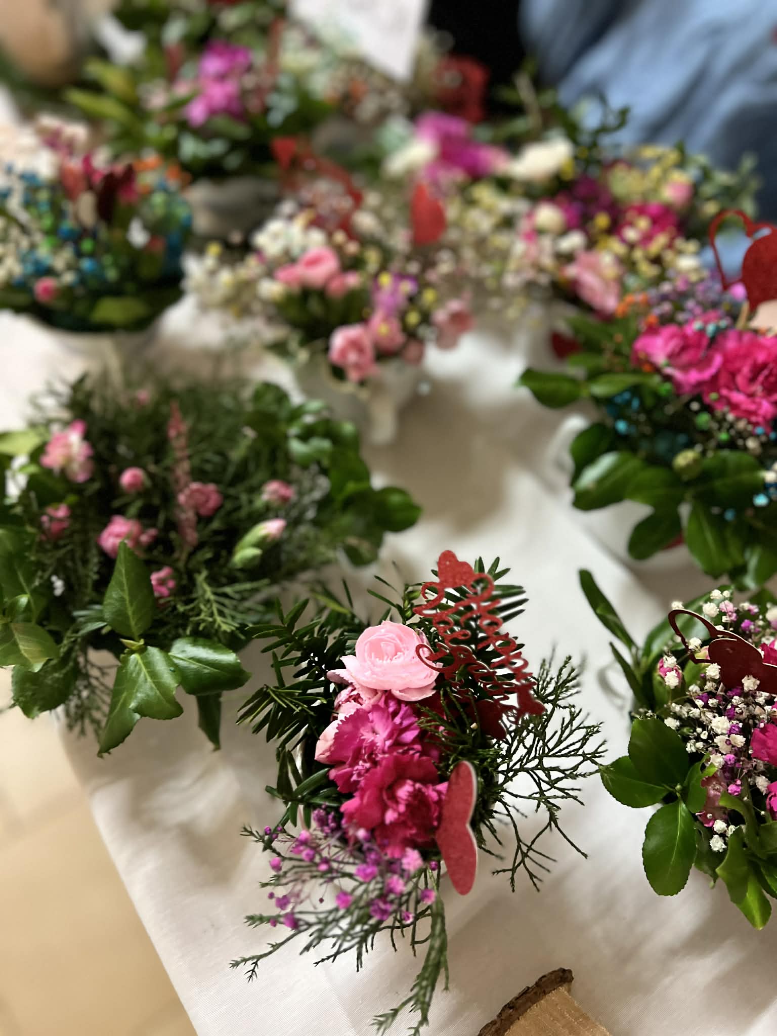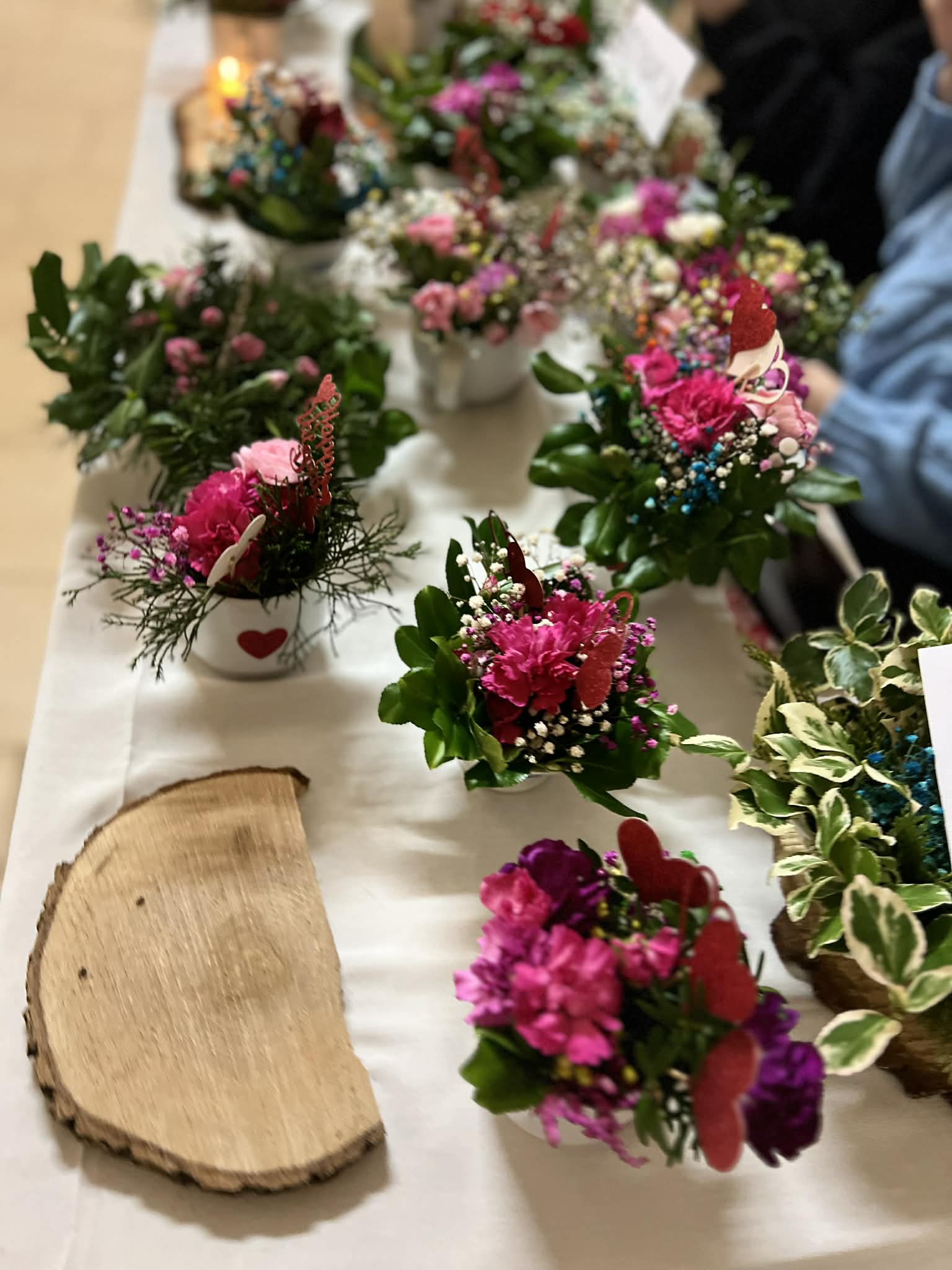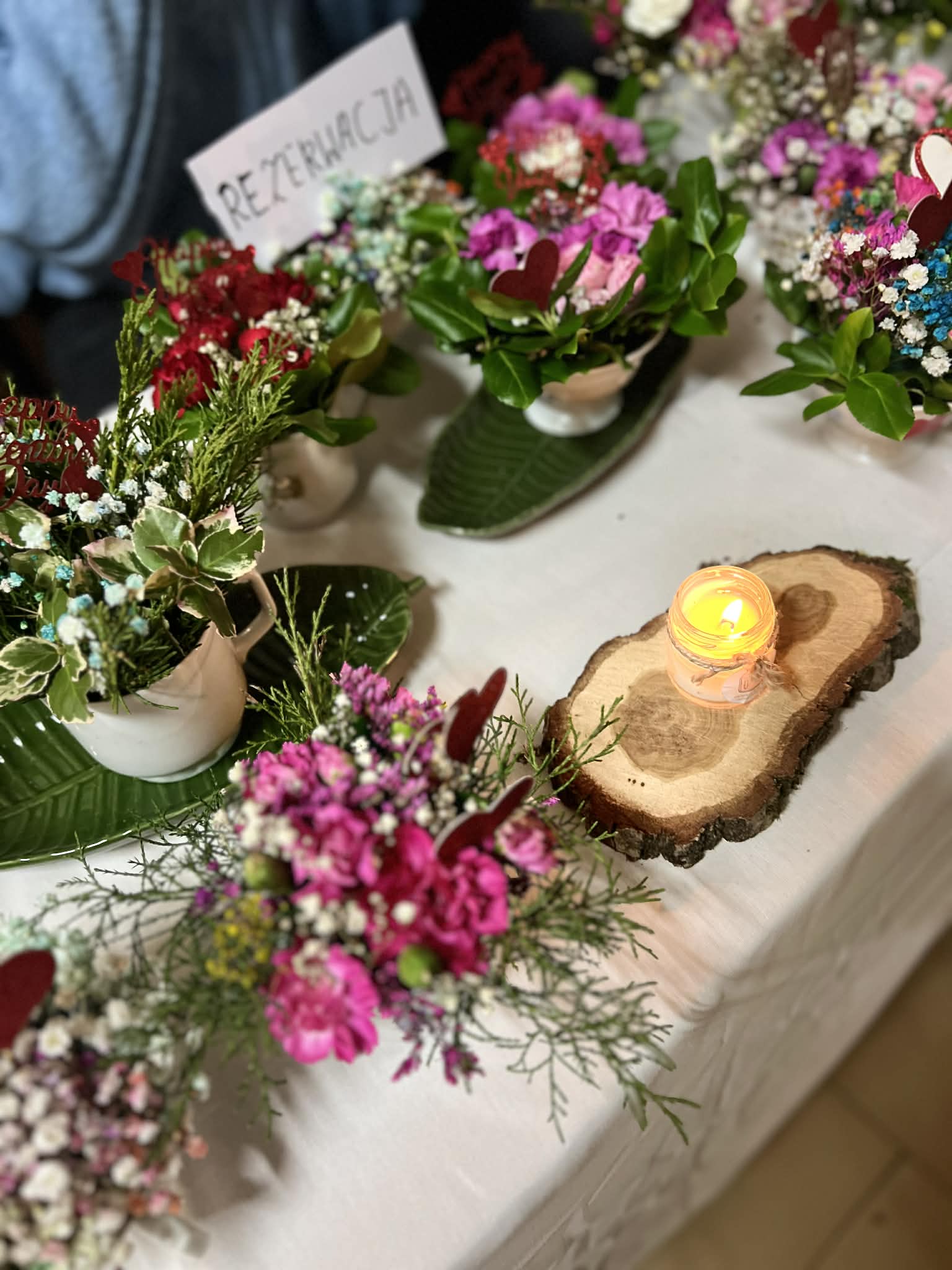 Własnoręcznie przygotowane kompozycje florystyczne cieszyły się dużym zainteresowaniem społeczności szkolnej.